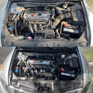 Wrapping up the engine, we’ll touch up any areas that need it and shine up all the plastic panels.