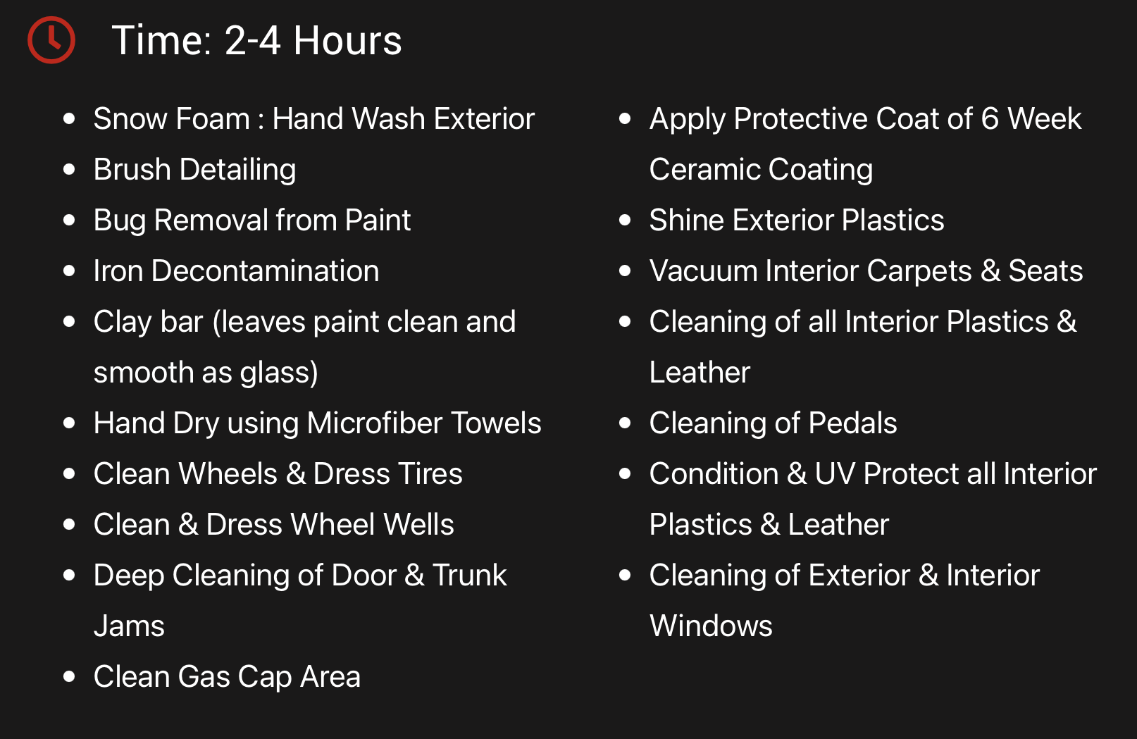 • Monthly maintenance, quarterly protective detailing services, semi-annual deep detailing services